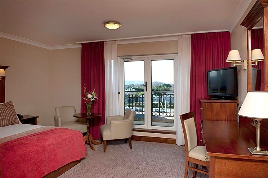 Spacious room featuring a king-size bed, a wingback armchair and footrest, and a 37-inch flat-screen TV. With an enhanced hospitality tray consisting of of herbal teas, biscuits and mineral water. Coffee Machine with complimentary coffee capsules. The private bathroom has a power shower and bath combination, and complimentary toiletries.